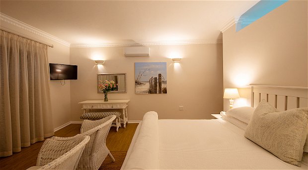 One of the best rooms in the house, this spacious bedroom with en-suite bathroom features stunning sea views in a luxurious setting.